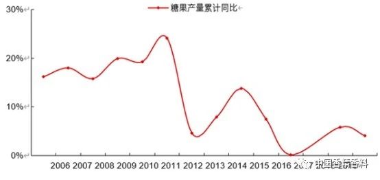 圖7 中國(guó)糖果產(chǎn)量維系增長(zhǎng)