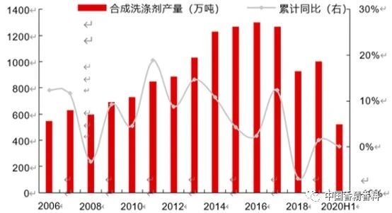 圖9 中國(guó)合成洗滌劑產(chǎn)量進(jìn)入新一輪增長(zhǎng)階段