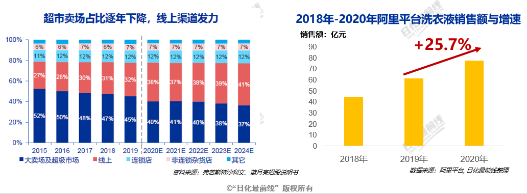 5.洗衣液渠道以超市賣場為主,線上渠道高速增長