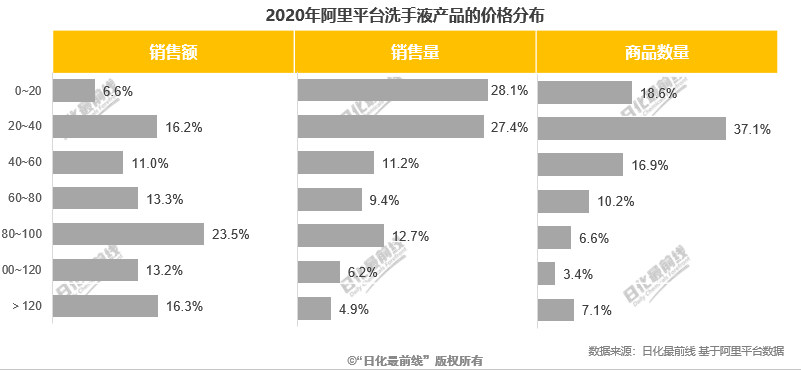 2.2020年阿里平臺洗衣液產(chǎn)品價格分布情況