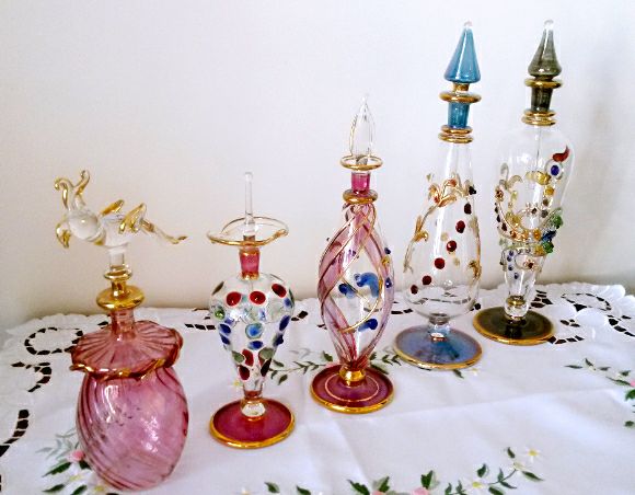 不過為了那些晶瑩剔透的香水瓶我也愿意買買買!裝香精的瓶子,或高或矮,有的呈棗核型,有的呈球狀,有的是五彩琉璃瓶,有的則是單色造型瓶……每個(gè)瓶子上的圖案都不太一樣,凹凸有致,層次分明,畫工精細(xì),讓人愛不釋手。