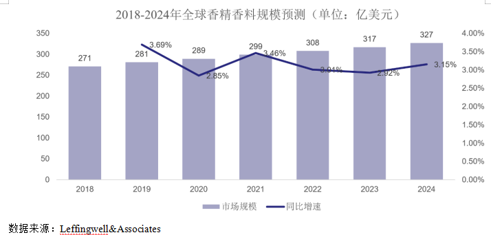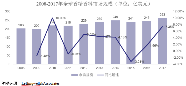 香精香料行業(yè)屬于弱周期行業(yè),市場(chǎng)規(guī)模隨著全球經(jīng)濟(jì)的發(fā)展和人類(lèi)生活水平的提高穩(wěn)步增長(zhǎng)。