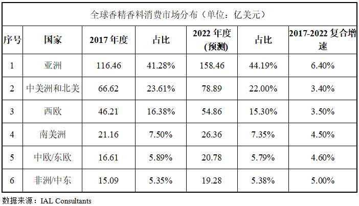 五、全球香精香料消費(fèi)市場(chǎng)分布情況