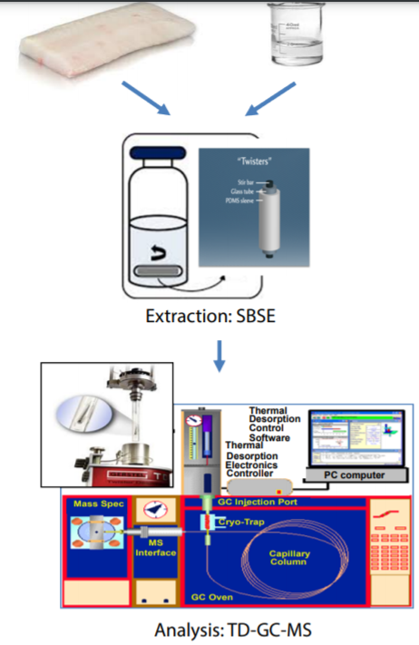 攪拌棒吸附萃取法是由Baltussen等人在1999年首次提出的,此后作為一種高效的樣品制備技術(shù)獲得了廣泛的認(rèn)可,用于富集水樣中的溶質(zhì)。SBSE-TD-GC-MS已被應(yīng)用于諸如葡萄酒中的農(nóng)藥和花卉化合物、生物液體中的有機(jī)溶質(zhì)以及水溶液中農(nóng)藥的快速篩選等多種應(yīng)用。使用聚二甲基硅氧烷(PDMS)作為萃取相的SBSE可以實(shí)現(xiàn)高回收率和極低的檢測限(LOD),可以從水樣中提取和富集相對極性的溶質(zhì)(log Kow > 3.0)。使用PDMS(Twister)的SBSE的優(yōu)點(diǎn)之一是可以從水基食品基質(zhì)中提取相對GC友好的溶質(zhì),而不富集非揮發(fā)性溶質(zhì),如氨基酸、糖類、糖苷、多酚等。事實(shí)上,從這種復(fù)雜的基質(zhì)中提取后,攪拌棒可以在超純水中進(jìn)行短暫的沖洗,以去除任何附著的物質(zhì),然后用無絨紙巾擦干。