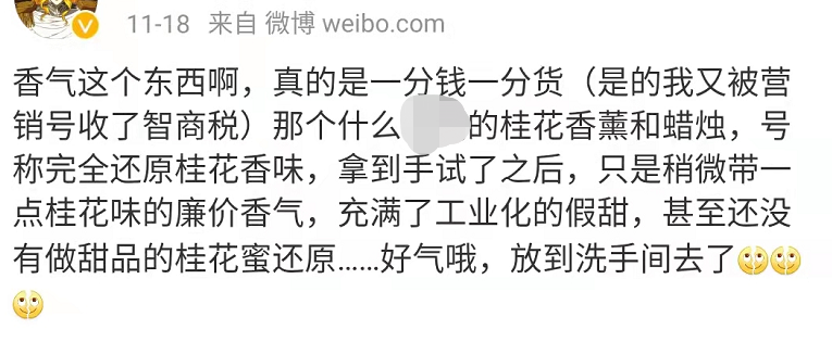 今年國內(nèi)香薰界流行的桂花香,被網(wǎng)友們譽(yù)為翻車最多的一種香。